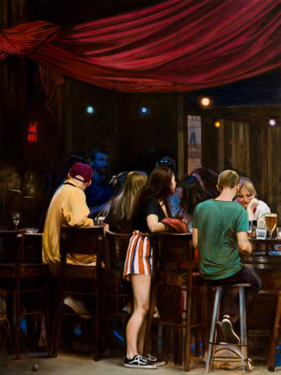 Il y saisit sur le vif des scènes du quotidien qu’il photographie avant de les transformer, dans son atelier, en compositions à l’huile d’un réalisme poignant. Cet ancien résident de la Villa Velázquez à Madrid convoque dans son travail les maîtres qui l’ont façonné, Le Caravage comme Hopper.