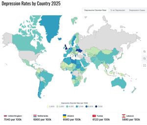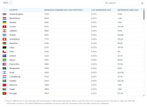 Ces statistiques reposent toutefois sur les cas diagnostiqués et officiellement déclarés. Il est à noter qu’elles ne reflètent donc pas nécessairement l’ampleur réelle du phénomène. Les écarts entre pays peuvent par ailleurs s’expliquer par des différences notables en matière d’accès aux soins, de qualité des systèmes de santé, mais aussi par le poids de la stigmatisation sociale. Dans certains contextes, la dépression reste un sujet tabou, freinant le diagnostic et la prise en charge, tandis que d’autres pays disposent de dispositifs plus performants favorisant le signalement des troubles mentaux.
