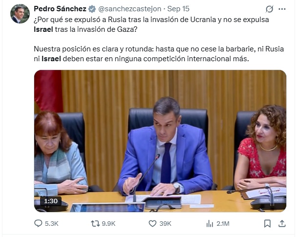 Ils rejoignent en cela la position du Premier ministre espagnol Pedro Sánchez, qui a récemment déclaré qu’Israël ne devait pas pouvoir utiliser les plateformes internationales pour soigner son image.