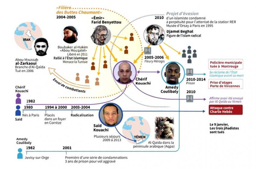 La radicalisation de jeunes musulmans parisiens : Parcours des trois jihadistes français et relations. ABM / DMK