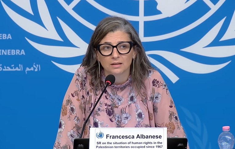 Le 3 juillet 2025, Francesca Albanese a présenté son rapport sur les droits humains en Palestine au Conseil des droits de l’homme. Capture d’écran/YouTube