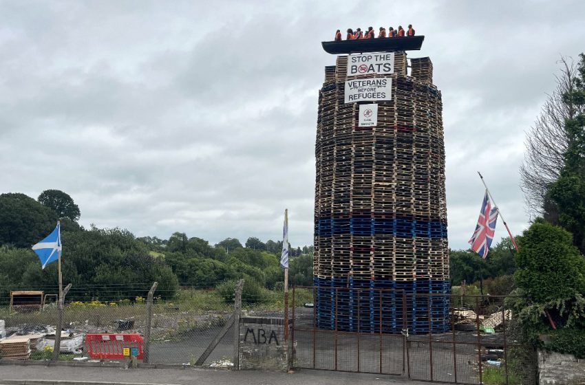 Une barque contenant des mannequins à l’effigie de migrants a été installée sur un bûcher érigé en Irlande du Nord à l’occasion de célébrations traditionnelles loyalistes.