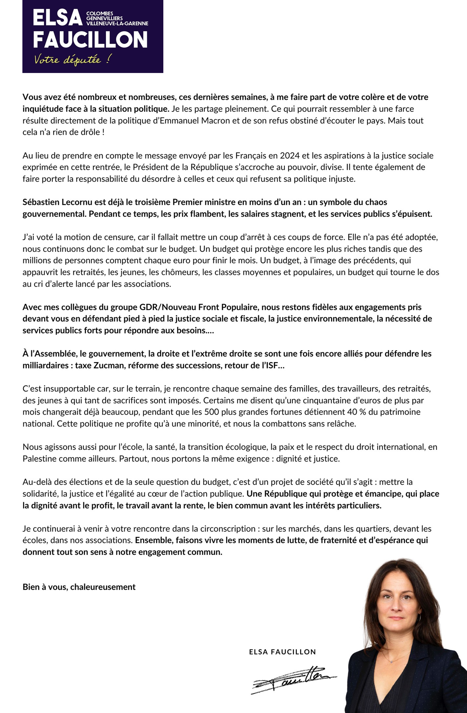 La lettre de votre députée