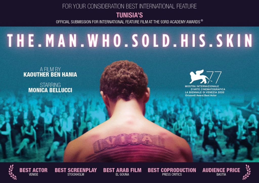 L’homme qui a vendu sa peau est un film multinational sorti en 2020. Le film avait été présenté en avant-première dans le cadre des Journées cinématographiques de Carthage (JCC) 2020. Il fut par la suite présenté dans la section Orizzonti de la Mostra de Venise en 2020, puis au Festival international du film indépendant de Bordeaux. Le 15 mars 2021, le film a ainsi été retenu parmi les cinq nominés pour l’Oscar du meilleur film international et entre donc dans l’histoire comme le premier film tunisien à concourir dans cette catégorie.