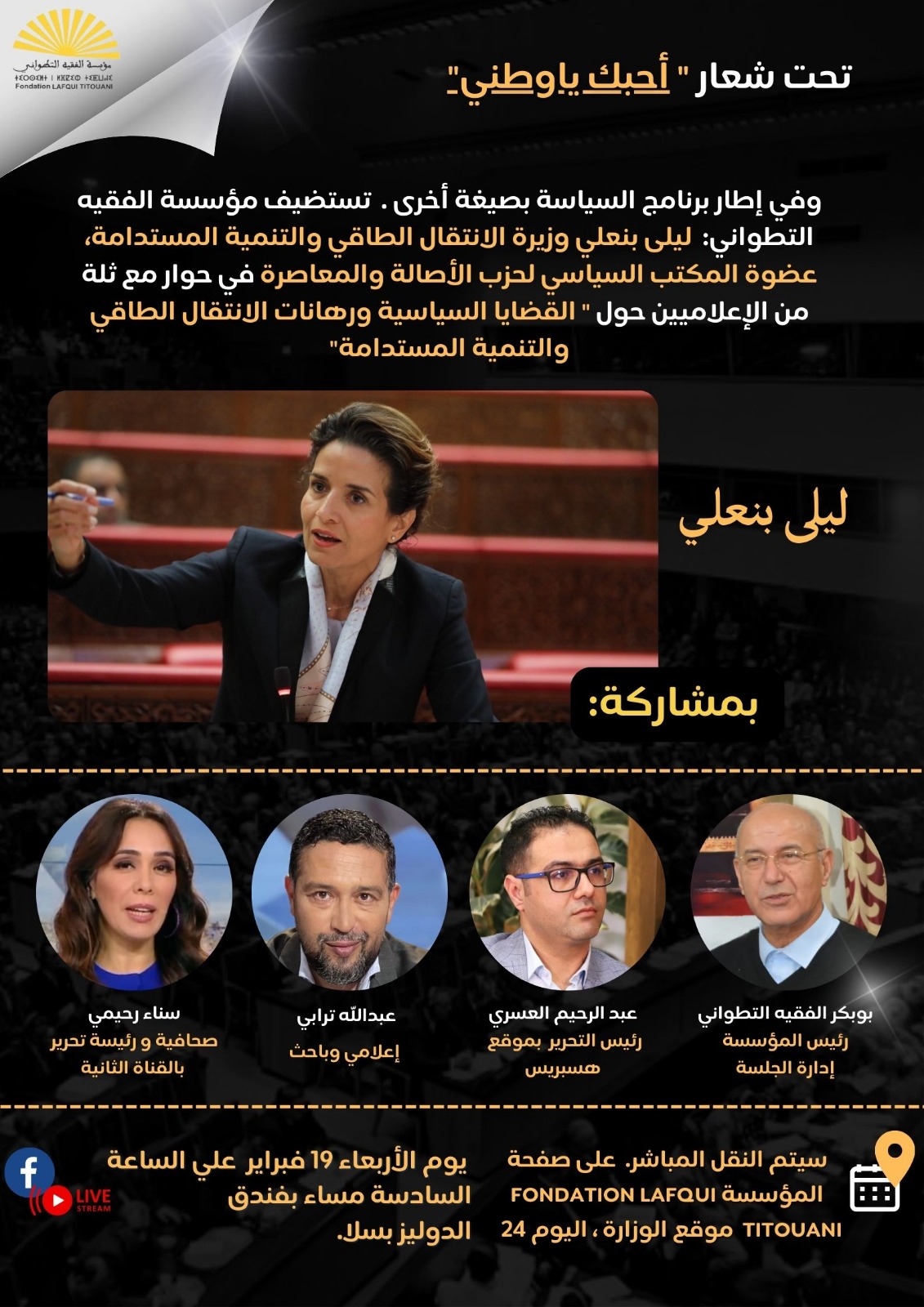 Le débat aura comme chef d’orchestre le président de la Fondation Fkih Titouani. Boubker Titouani avait lancé, en 2016, cette émission de débat en plaçant la barre très haut : les sujets débattus devaient être de haut niveau, les sujets politiques traités avec une approche différente, attaques personnelles et jugements de valeur exclus, avec une prédilection pour les échanges portant sur les idées et les programmes.