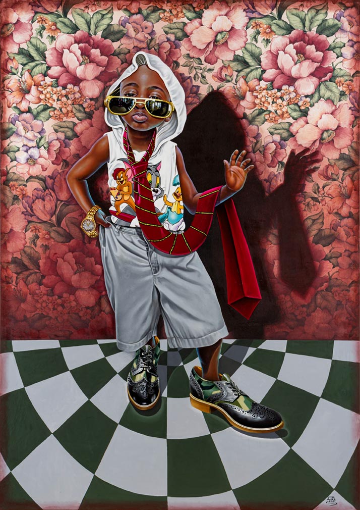 Le Congolais JP Mika, représentant flamboyant de la nouvelle génération des plasticiens populaires congolais, revendique simplement le bonheur d’être et de vivre. « Dans ma peinture, il n’y a pas de faits divers, pas de message politique, pas de critique. Il y a trop de difficultés et de misère dans la vie. C’est pour ça que je veux que l’on ressente toujours l’espoir dans mes tableaux. » Arborant lunettes, cravate, montre bling-bling et chaussures trop grandes, son Prétendant sapeur déclenche forcément le sourire.