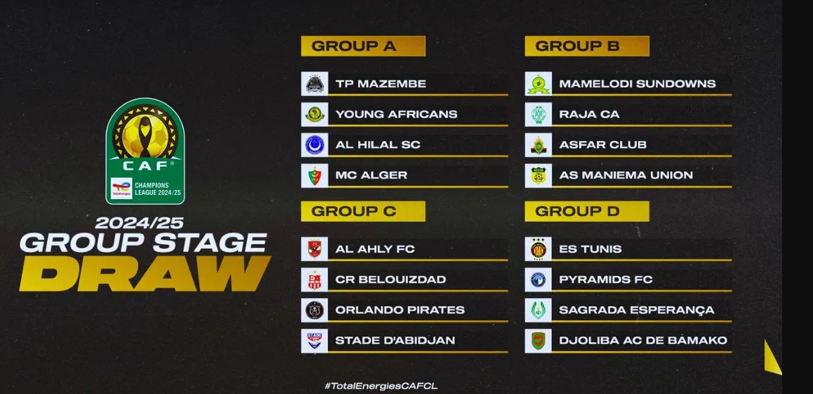 Par ailleurs, Al Hilal (Soudan), Young Africans (Tanzanie), Mouloudia Club d’Alger (Algérie) et TP Mazembe (RD Congo) ont hérité du groupe A, tandis qu’Al Ahly (Égypte), Orlando Pirates (Afrique du Sud), Chabab Belouizdad (Algérie) et Stade d’Abidjan (Côte d’Ivoire) ont été placés dans le groupe C.