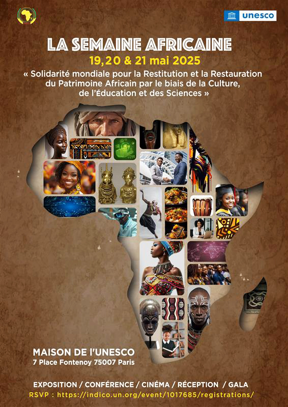 Paris, le 19 mai 2025 – L’UNESCO a donné le coup d’envoi, lundi, à la Semaine africaine 2025, placée cette année sous le thème : « Solidarité mondiale pour la restitution et la restauration du patrimoine africain par le biais de la culture, de l’éducation et des sciences ».