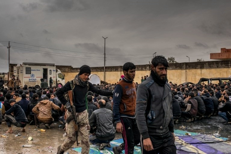 Des hommes suspectés d’être des membres de Daech sont arrêtés par les forces irakiennes aux environ de Mossoul