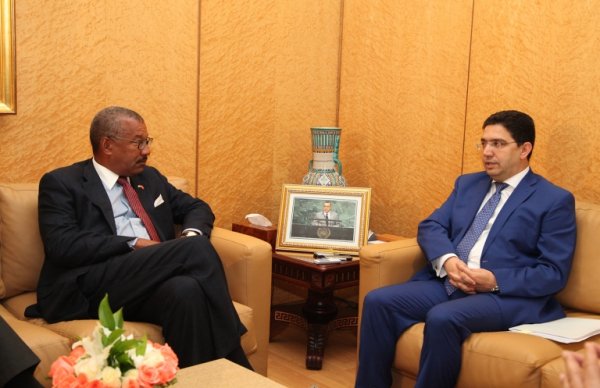 Le ministre marocain délégué aux Affaires étrangères Nasser Bourita et l’ambassadeur des Etats-Unis Dwight L. Bush lors de leur entrevue au ministère à Rabat