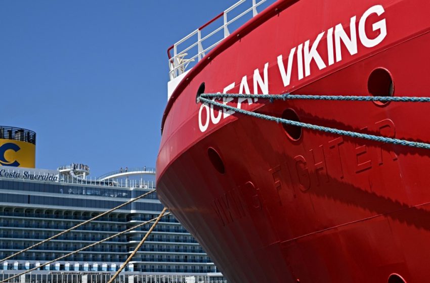 Le navire de secours des migrants Ocean Viking, exploité par l’ONG SOS Méditerranée, est amarré au port de Civitavecchia le 14 juillet 2023, après que les autorités ont ordonné la détention du navire « pour une période indéfinie ». (Photo par Andreas SOLARO / AFP)