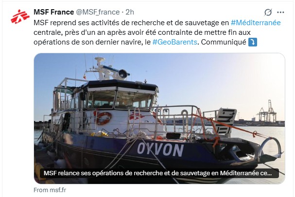« La décision de MSF de déployer un navire plus petit et plus rapide est une réponse aux lois et pratiques d’obstruction imposées par le gouvernement italien, qui visent spécifiquement les navires de sauvetage humanitaire », expliquait Juan Matias Gil.