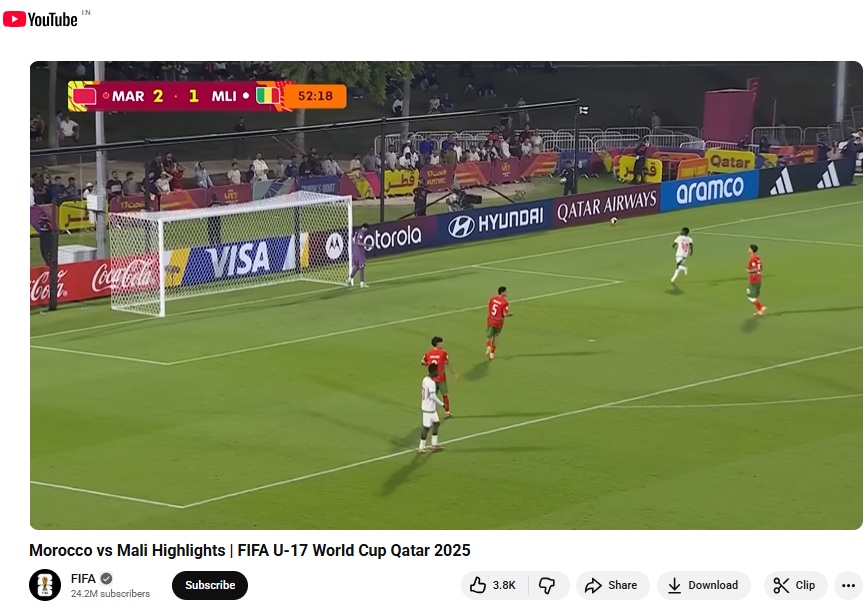 Mondial U17. L’équipe nationale du Maroc des moins de 17 ans s’est qualifiée pour les quarts de finale en battant le Mali 3 à 2, mardi 18 novembre, sur le terrain n°7 de l’Aspire Zone à Doha.