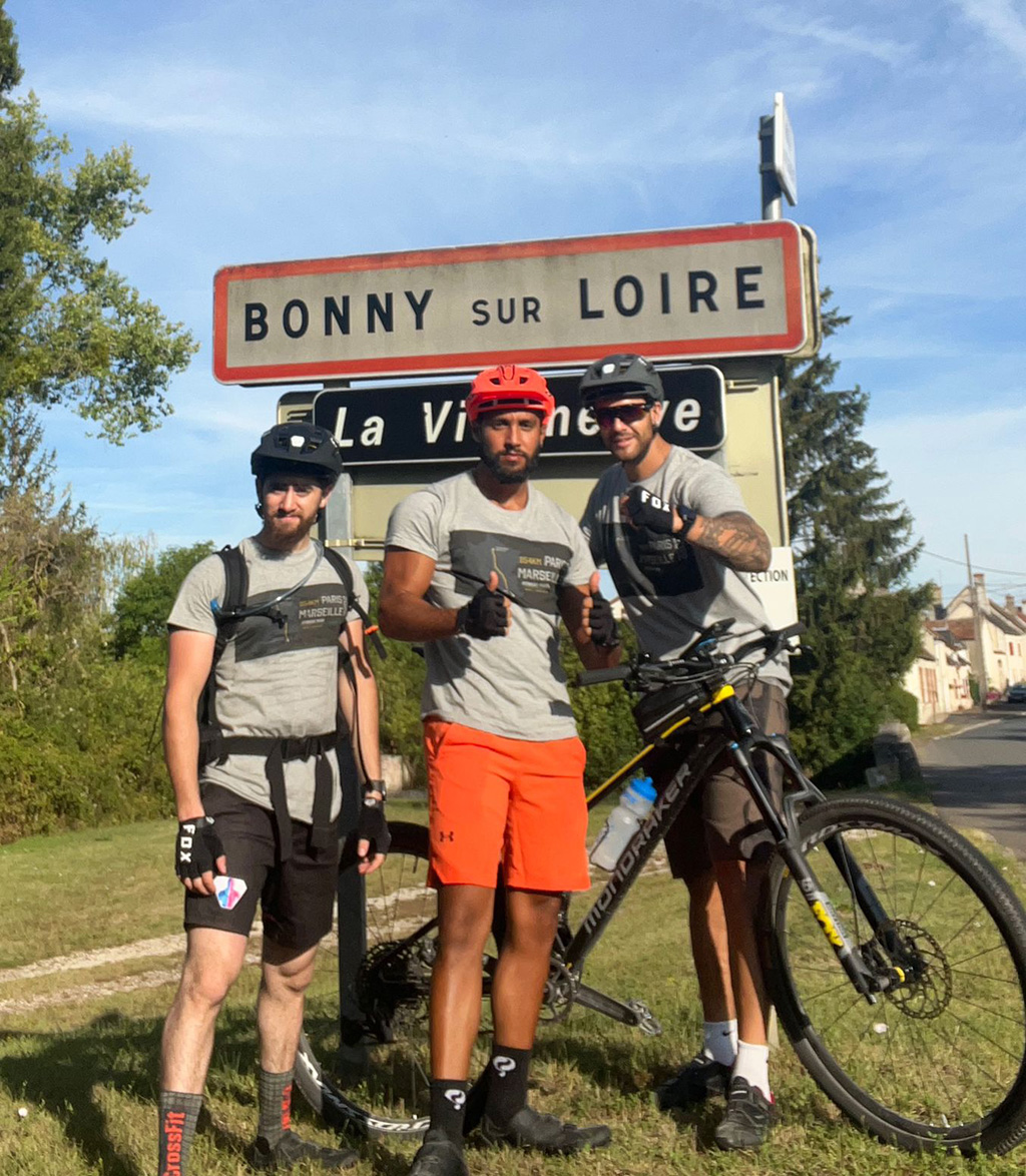 « On a roulé en moyenne 9h par jour », raconte Ismaïl, à l’initiative du projet. Les trois compères qui n’avaient jamais fait de vélo auparavant, fréquentent la même salle de sport, le Fitness Park d’Aéroville (93) où Ismaïl est manager, Walid coach, et Ali, simple adhérent. C’est d’ailleurs de cette salle de sport francilienne qu’a démarré leur périple. Après 854 km de VTT, ils ont atteint le Fitness Park de Marseille.