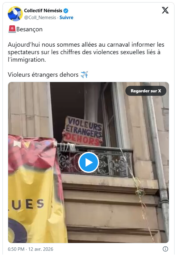 Une banderole du collectif Némésis visant les étrangers a suscité une vive polémique lors du défilé du carnaval de Besançon. La ville a saisi la justice après cette action en pleine parade festive.