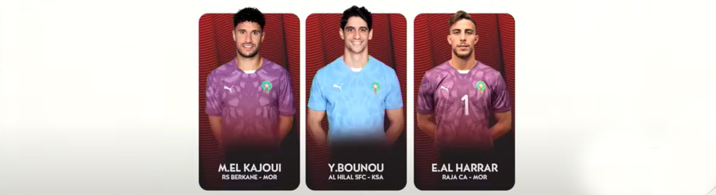 Mounir El Kajoui (Renaissance Berkane), Yassine Bounou (Al Hilal, Arabie Saoudite), Mehdi Al Harrar (Raja Casablanca)