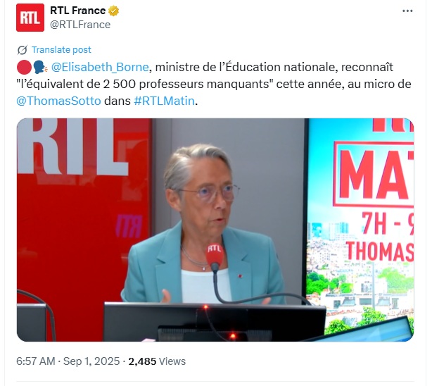 En cette rentrée 2025, il devrait manquer « l’équivalent de 2 500 professeurs », reconnaissait la ministre de l’Éducation nationale au micro de RTL.