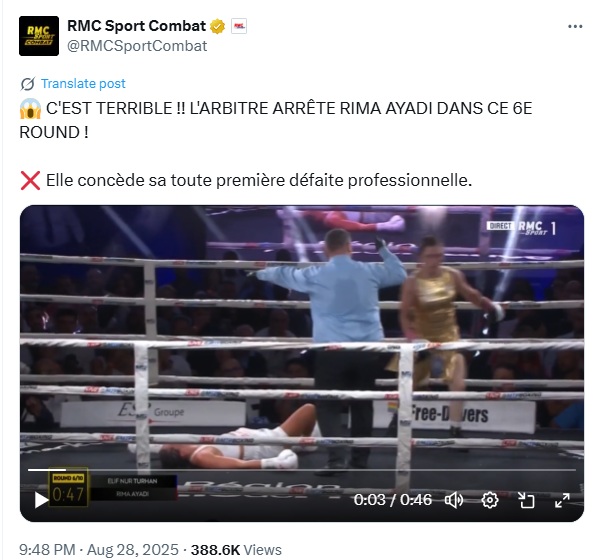 Rima Ayadi rêvait de devenir championne du monde de boxe. Ce jeudi soir, au casino d’Enghien-les-Bains, la Francilienne avait rendez-vous avec l’histoire. À 36 ans, elle disputait le combat de sa vie pour le titre WBA intérimaire des super-plumes. Mais au sixième round, une droite de la Turque Elif Nur Turhan met fin à ses espoirs. Première défaite pour la Française. Une salle glacée. Et une image qui restera gravée : celle des larmes d’une maman.