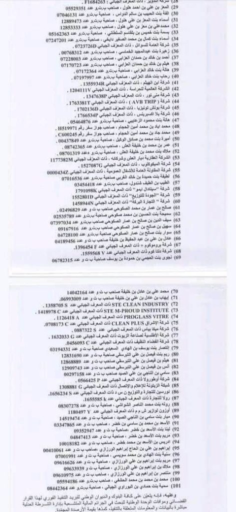 Selon un document leaké dans la matinée de jeudi sur les réseaux sociaux, la liste comprend essentiellement des figures du parti Ennahdha dont Adel Daadaa et l’ancien député Amer Laarayedh, ou encore Soumaya Jbeli, la fille de l’ancien leader nahdhaoui et ex-Premier ministre, Hammadi Jabali, mais aussi l’un des gendres de Rached Ghannouchi.
