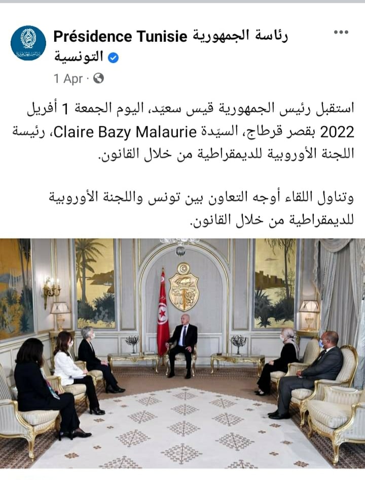 Dès le 1er avril, le président tunisien recevait Claire Bazy Malaurie, présidente de la Commission de Venise. Une hospitalité qui contraste avec le ton extrêmement hostile employé lundi :